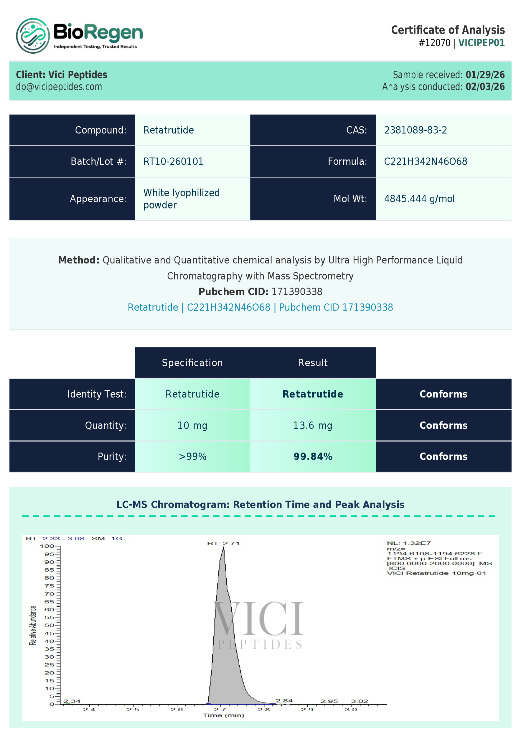 The purity levels verified by the mass spectrometry profiles are exactly what I look for in a premium supplier. I have utilized their Tirzepatide across multiple cycles and the results remain consistent every single time. Vici is clearly dedicated to providing high-grade materials that meet strict quality control protocols.