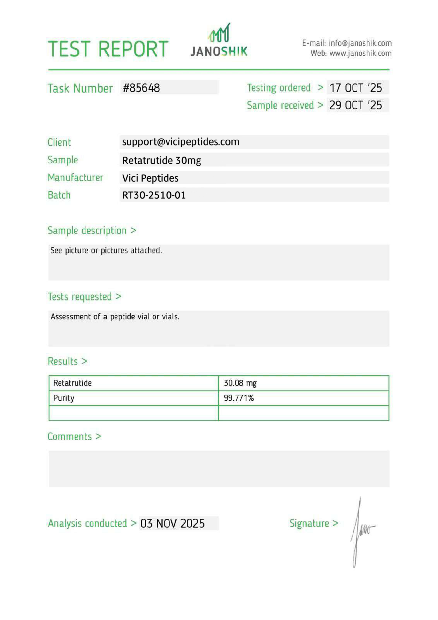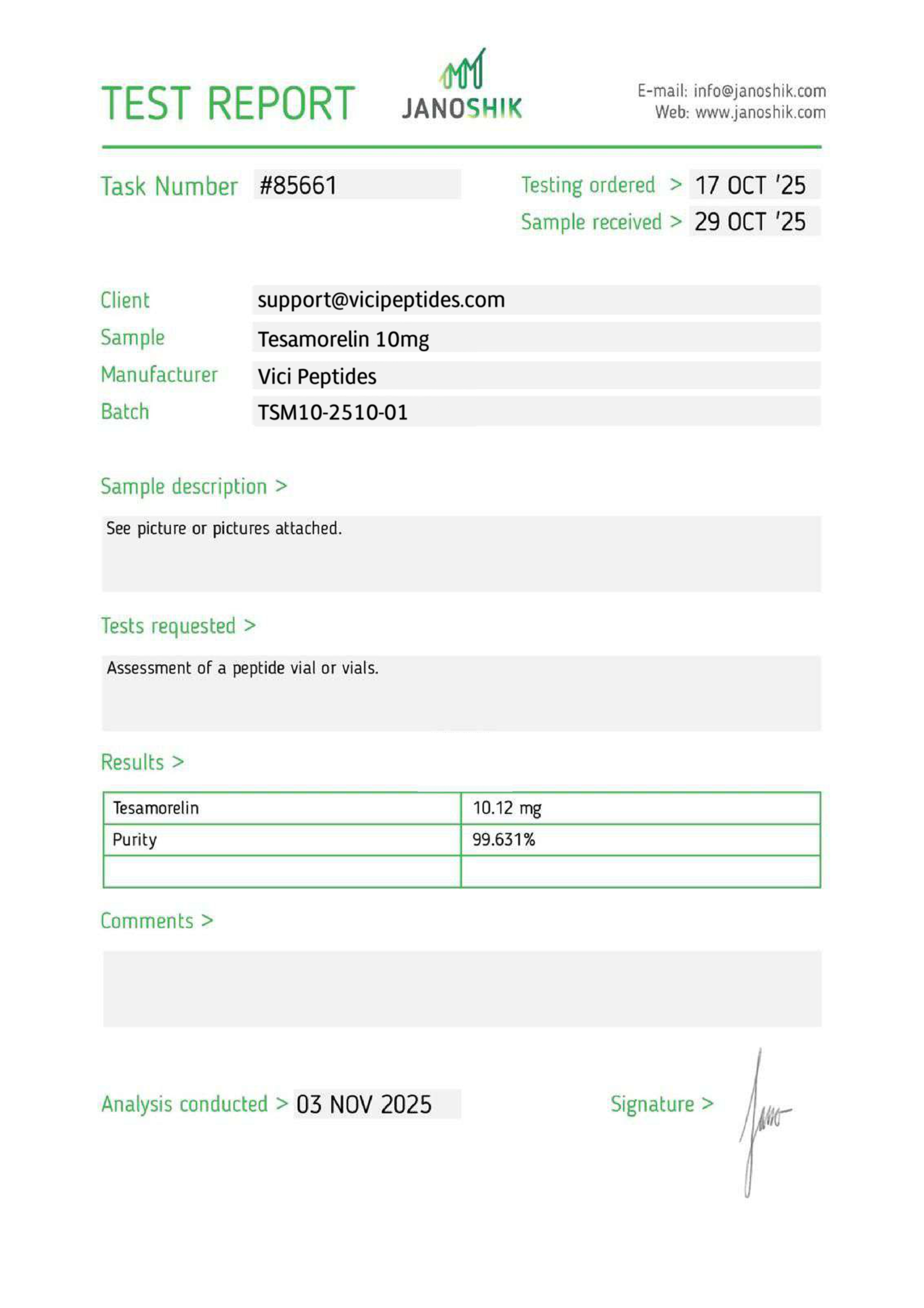 Every batch includes an in-depth Certificate of Analysis with full HPLC chromatograms, mass spectrometry profiles, synthesis records, and validated purity results to ensure total transparency and traceability for advanced research.